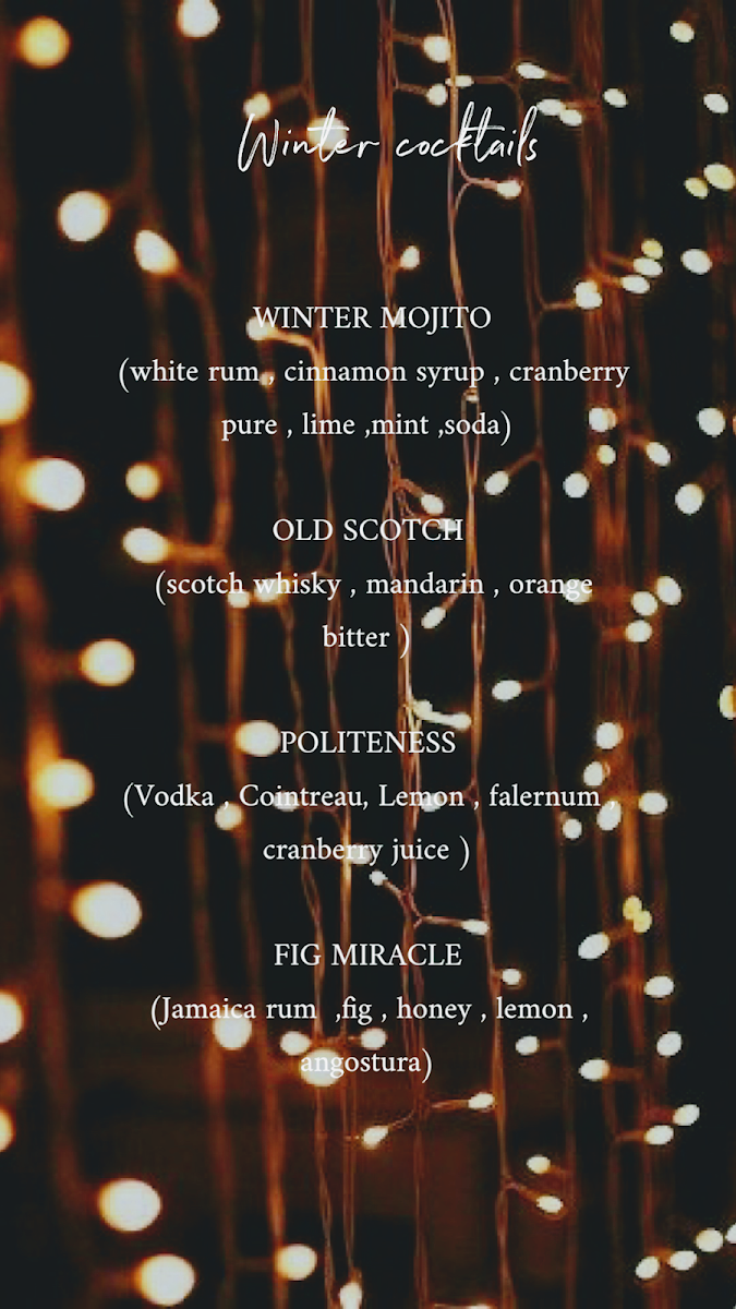 Hope coffee cocktails food Menu